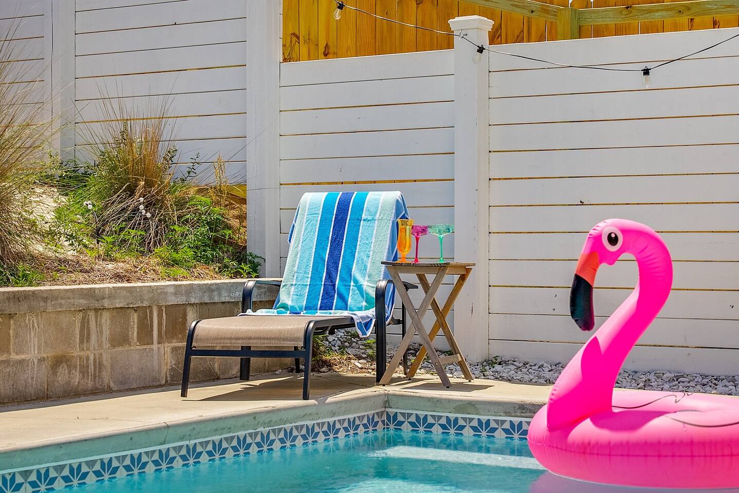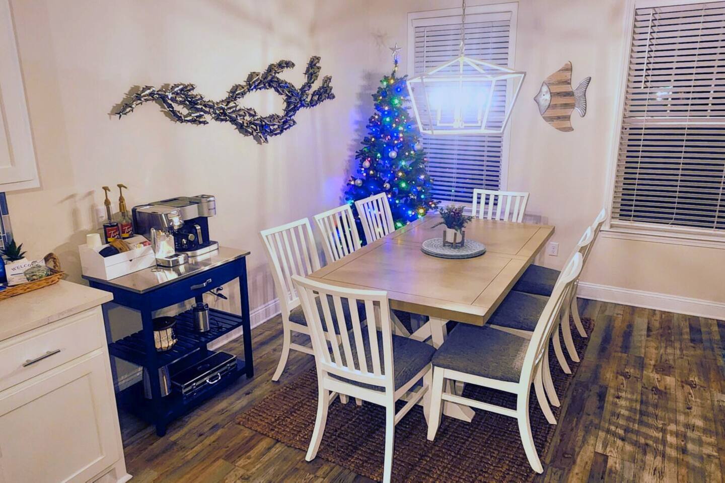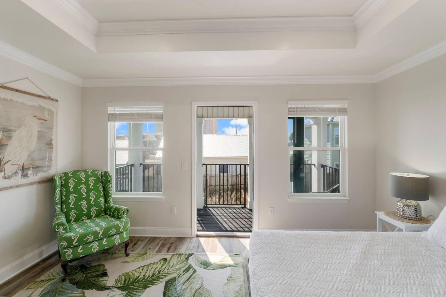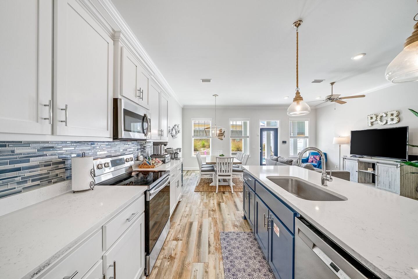 A spacious family beach home designed for relaxation and good times, with a private heated pool, comfy sun loungers, fenced yard with a grill, and lots of little luxuries that make getaways easy and fun for every generation. Our "almost beachfront" location offers a short walk to the beach, giving you all the perks without the premium price. • 10 Guests • 7 Beds • 4 Bedrooms • 3 Bathrooms • 738 Mbps WiFi (fast!) • 12 Dining Seats: 8 at dinner table, 4 at the island • 4 Coffee Options: Espresso, Keurig, French Press, Standard Drip • 4 Remote Workspaces: desks, ergonomic chairs, monitor, keyboard • 3 Adult Bikes • 45+ Board Games: the most in PCB! • 2 Miles to Walmart, near Publix grocery store and local attractions **Minimum age to book is 25. No smoking. No pets.** Silver Sands Getaway is a favorite for families and groups with infants or toddlers, grandparents or multigenerational guests for many reasons: 📌 CONVENIENT LOCATION This family-friendly vacation home is an ideal base for exploring the city and the surrounding Emerald Coast area, including 30A. It is located in a quiet neighborhood in the east end of Panama City Beach (PCB) with easy access to the beach (access #16 & #17), restaurants, coffee, grocery stores, ice cream shops and local attractions (mini golf, go karts, water parks, fishing excursions, Shell Island ferry, water activities, golf cart rentals). Walk over to Alibi Beach Lounge & Grill for live music and the famous pickle shot—a local favorite! Don’t miss Mr. Puff's Hand-Rolled Ice Cream nearby; it's the perfect sweet treat to top off your day.🍦 ⛱️ BEACH & POOL GEAR FOR ALL AGES Helpful beach wagon to transport your beach-day gear. Comfortable backpack beach chairs, beach towels, cooler, beach umbrellas, sand toys, body boards and pool floats supplied, plus baby swim gear like floats and vests. The private heated pool with its magical color-changing lights is cleaned and serviced 2x per week. No charge for pool heater. 👶 FAMILY-FRIENDLY AMENITIES Traveling with children? Silver Sands Getaway is stocked with thoughtful touches and lots of toys to make trips smoother, safer and much more fun. • Baby & Kid Gear: Toys and books galore! Mini crib, Pack-n-Play with mattress + sheets, highchair, baby gate, baby bathtub, outlet covers, baby monitor, toddler utensils and dinnerware • Beach-ready: Baby float, toddler vest, sand toys and beach wagon for easy carrying • Entertainment: 40+ board games for all ages, from Candy Land, Uno, Yahtzee and Dominoes to strategy games for teens and adults • Bunk Room: Two sturdy sets of twin bunks – kids love this space! • Fenced Yard & Pool: Safe outdoor space for playtime with pool gate alarm and color-changing lights for evening swims • Flexible Sleep & Work Options: Bedrooms on both floors and portable workstations for balancing family time and remote work. 🖥️🌴 REMOTE-WORK READY This home is a great fit for digital nomads, meeting the needs of even the most demanding remote work situations and providing a comfortable and productive work-from-the-beach experience. • Fast and reliable Wi-Fi for remote work. • 4 dedicated workstations equipped with desk, ergonomic chair, large monitor, keyboard and mouse. • Alternate workspaces — like the living room, dining room or patio — offer a refreshing change of scenery and allow multiple people to work at the same time. • The green wall in master bedroom provides an excellent video conferencing backdrop. 🧼 STOCKED FOR YOUR CONVENIENCE Starter pack of supplies is provided (toilet paper, paper towels, trash bags, Keurig pods, dishwasher detergent, dish soap, shampoo, conditioner, soap, etc.). You may need to bring or buy additional supplies based on the length of your stay. 💎 LITTLE LUXURIES • 2 Coffee Bars: one in the downstairs main living area and another in the upstairs master suite • 3 Adult Bikes. Let us know prior to your visit that you would like to use these. • Propane Grill: free propane • Bartesian cocktail maker, with sample pods • 40+ Family Board Games for all ages (Yahtzee, Jenga, Sorry, Life, Dominoes, Mancala and many more!) • Exercise equipment: Free weights, yoga mat • Safe for valuables • 1 bedroom and 1 bathroom located on first floor • Laundry Room: Washer, Dryer, Iron, Ironing Board • 1-min walk to Tom Thumb convenience store. Beach Liquors & Ms. Newby’s offer alcohol delivery—Ms. Newby’s also has a drive-through (4-min drive). 🍽️ KITCHEN Many excellent nearby restaurants deliver or offer take-out, but for those wanting to cook, the fully loaded kitchen is well-equipped: • Dishes (plates, bowls, serving platters) • Glassware (wine, champagne and margarita glasses) • Plastic drinkware for by the pool • Utensils • Pots and pans • Electric stand mixer • Crockpot • Blender • Rice cooker • Waffle maker • Bread maker • Appliances and cooking essentials. For those who love baking, the kitchen is stocked with pie plates, muffin tins, cake and bread pans, cooling racks, and more—everything needed to whip up blueberry muffins or a birthday cake. ☕ Start your day with a perfect cup of coffee or tea. Choose from the espresso machine, French Press or the Keurig Duo, with complimentary K-Cups provided. You'll also find a selection of tea, sugar, sweeteners and creamer to make your morning just the way you like it. 🍸 Unwind with a craft cocktail at the push of a button! Our Bartesian cocktail maker lets you mix bar-quality drinks effortlessly—just insert a capsule, add your own alcohol, and enjoy. We’ve provided a selection of sample capsules so you can sip and relax in style. 🛏️ BEDROOMS Each of the 4 bedrooms features high-quality linens, multiple pillows, Roku-enabled smart TVs and portable workstations. • Bedroom 1 - Downstairs: Queen bed with 14-inch mattress and 50-inch Roku TV. This first-floor room is great for seniors or guests who 