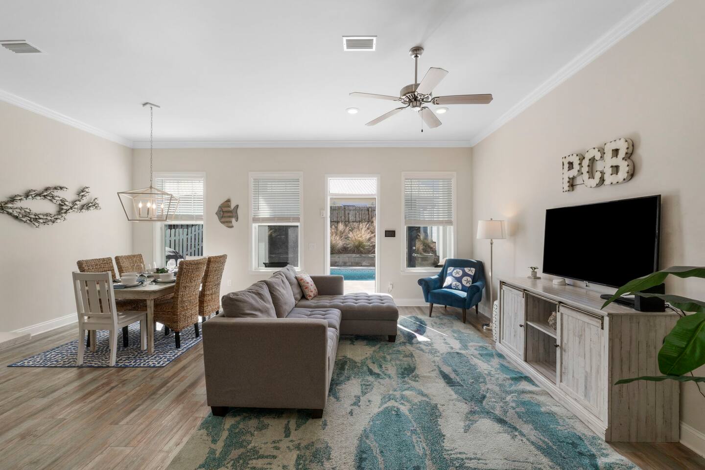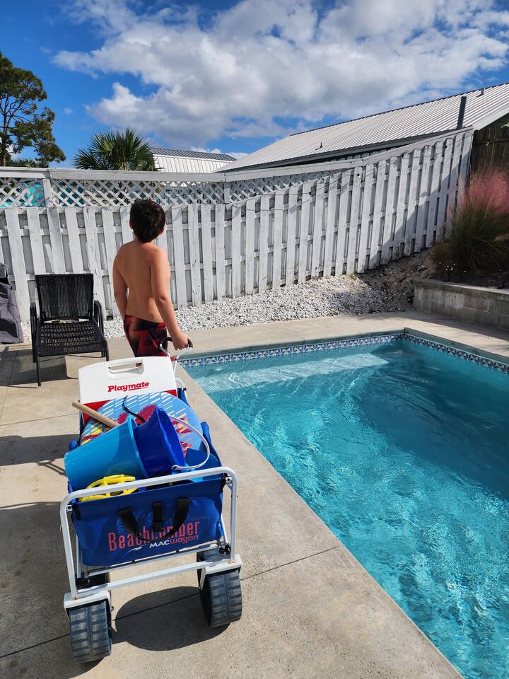 Welcome to Silver Sands Getaway in Panama City Beach! ■ Walk to beach, coffee, dining & local shops ■ Private Heated Pool, fenced yard, gas grill ■ Beach Gear: chairs, cooler, wagon, towels, umbrella, floats ■ 3 Adult Bikes ■ Baby & kid must-haves: toys, pack-n-play, floaties, high chair, gate, monitor ■ 2 Coffee Bars: Espresso, Keurig, Drip & French Press ■ 45+ board games + 5 Roku TVs ■ Fast WiFi & 4 desks for remote work ■ Bunk room (double set of bunks) ★ Save to your wishlist—tap ❤️ above!