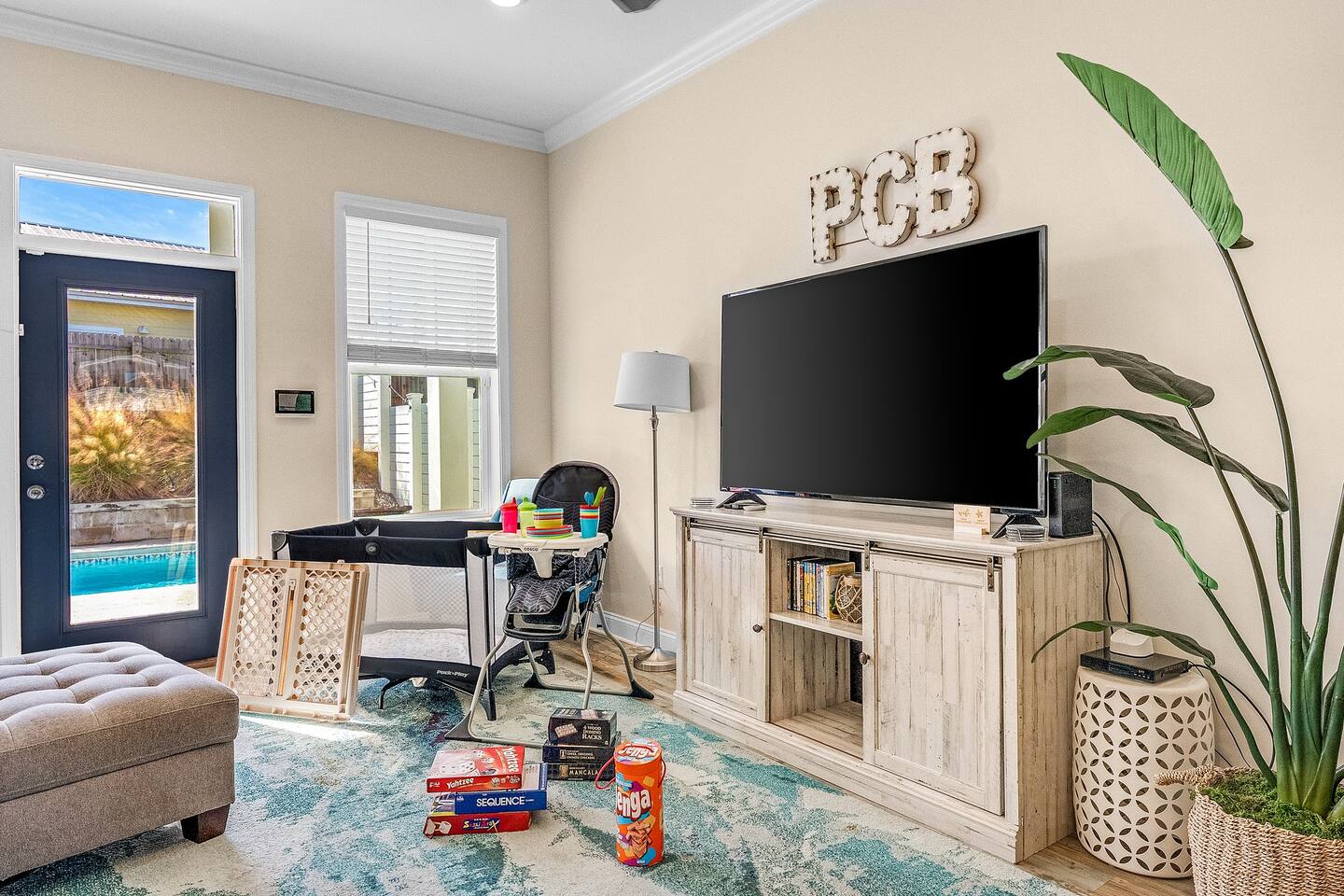 Guests must be 25 years of age or older or accompanied by a parent or adult that is 25 years or older and responsible for all guests, to rent and stay in the home. Driveway comfortably fits three to four smaller vehicles or two large SUVs or trucks. Stairs are required to access 3 of the 4 bedrooms. All linens (bed linens, towels, beach towels) are provided, with a washer and dryer in the home. To turn off the pool gate alarm, close the gate and hit the "Reset" button. To get through the gate in the future without the alarm going off, hold the "Pass" button. For the security of our guests and the safety of our home, we have external security cameras located at the front door and backyard. This home is professionally cleaned after every stay and high-touch surfaces are disinfected. Smoke/CO detectors, first aid kit on site and fire extinguishers on site.